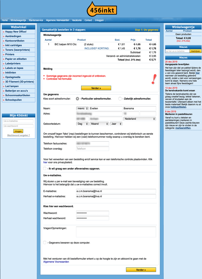 Oud (rechts): Onoverzichtelijk en rommelig. Alle velden bij het bestelformulier zijn verplicht. Het is niet mogelijk om een stap terug te gaan. Betaalmethodes zijn ouderwets > verliest vertrouwen van klant.